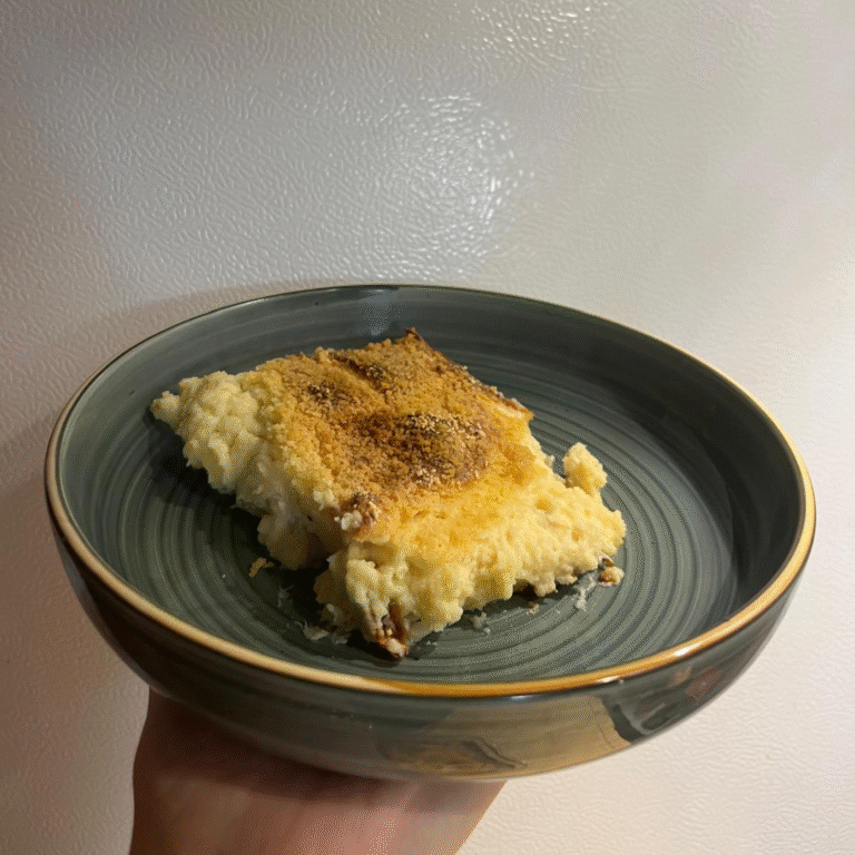 Enfourner à 200°C pendant environ 40 minutes, jusqu’à ce que le dessus soit doré et croustillant.